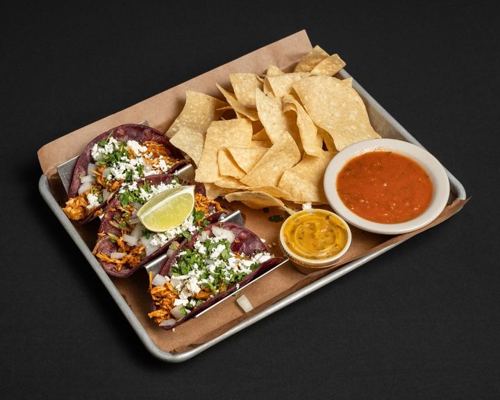 3 Tacos - on blue corn tortillas, w/fresh diced onion, cilantro, lime wedges, queso fresco, choice of house-made salsa, served w/chips and house salsa