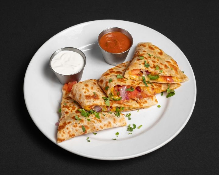 Flour tortillas stuffed with cheese, grilled onions, tomatoes, jalapenos. Served w/crema & salsa
