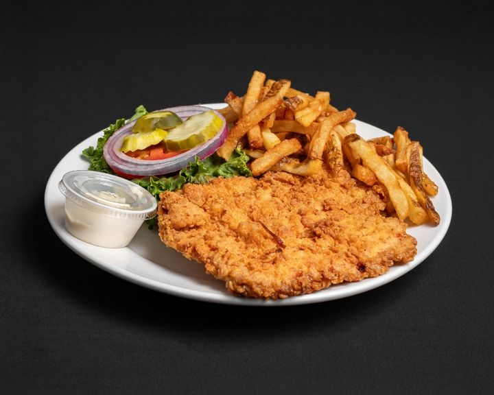 Choice of grilled or breaded pork tenderloin, lettuce, tomato, pickle, onion, brioche bun, mayo on side